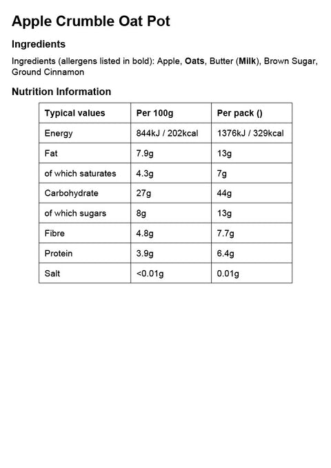 Oats contribute fibre, with apple adding natural sweetness. Served with a crumble-style topping.