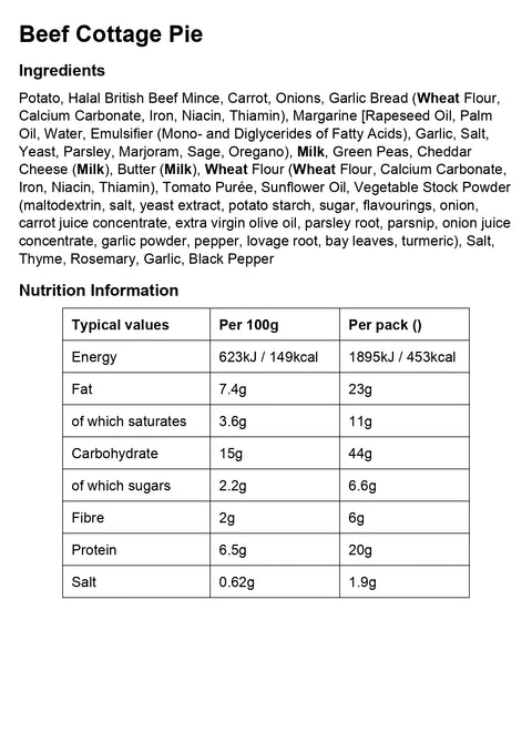 Beef provides protein, topped with mashed potato for carbohydrates. Includes vegetables within the filling.