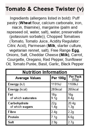 Flaky puff pastry filled with hidden veg tomato sauce, cheddar, and parmesan cheese, twisted and baked until golden—delicious hot or cold.