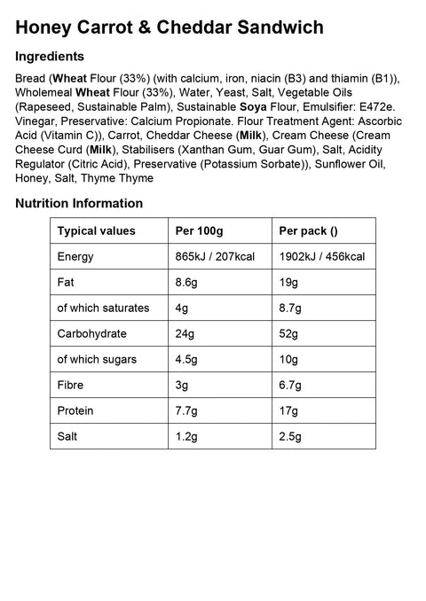 Honey Carrot & Cheddar Sandwich (v)