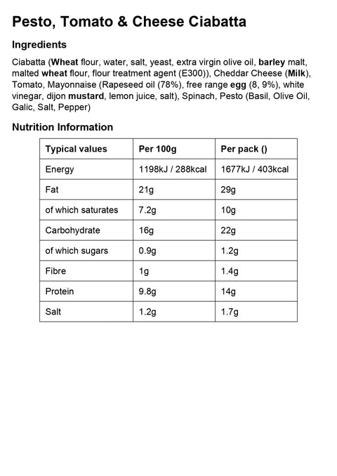 Pesto, Tomato & Cheese Ciabatta (v)